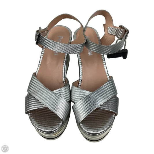 Sandals Heels Platform By Clothes Mentor In Silver, Size: 6.5